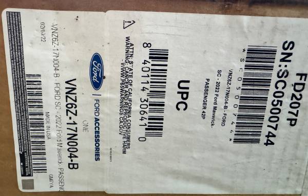 Brand new in a never open box, pick-up bed undercover Storage Pivot Storage RH mount with all the hardware and locking keys, will fit all years and trim level FORD MAVERICK