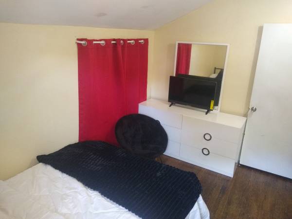 $500 for one room fully furnished with a full sized bed, lamps, book case, Tv, chair, folding desk, ottoman, etc. With raised bed for extra storage. In a 3 room house. Wifi available. Room requires background check, and security deposite negotiable of $500. The room is near route