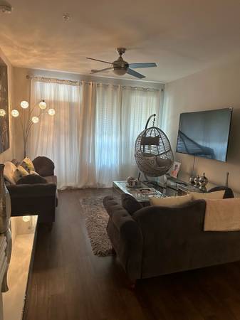 This is a one bedroom in a two bedroom luxury apartment located in Laurel, MD. This room has two closets (one walk-in closet and one regular closet). A large private bathroom with classic finishing. Enjoy the pool view from your room or from the bacony. You will have access to a standard gym compareable to any commercial gym centres for free , garage parking, accesss to the pool and the barbecue area. Rent include all untilities (Internet, water, sewage, electricity and valet trash service). This room is available for someone with verifiable source of income. Text or email is okay. Single FEMALE only Pls.