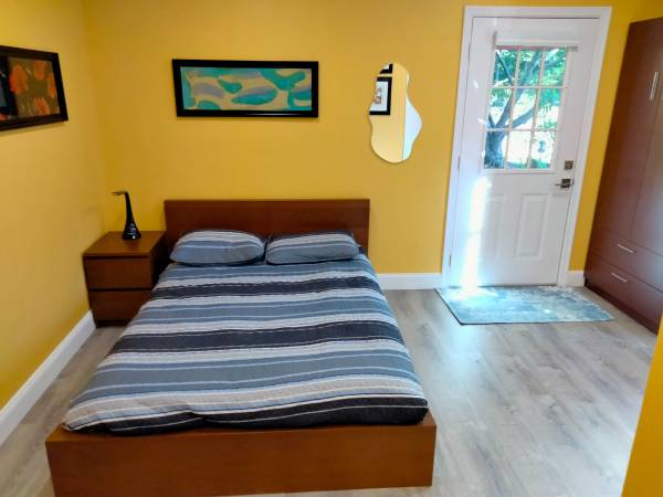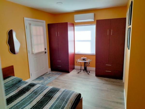 Warm, inviting, this private studio has your own remote-control AC/Heat unit and stacked Bosh washer/dryer.