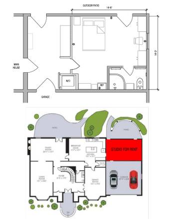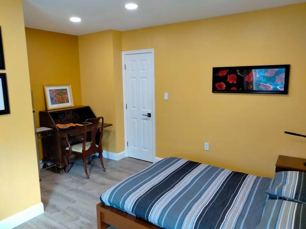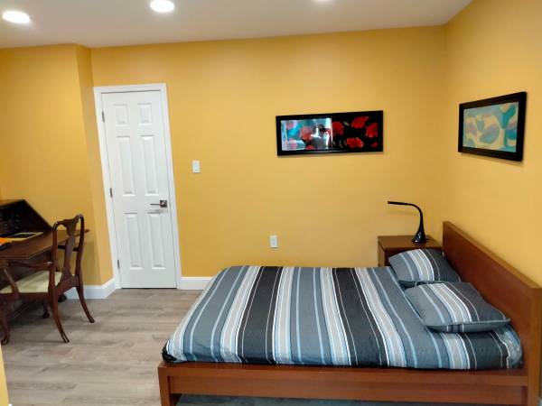 A recent build private and fully furnished room/studio behind garage within a contemporary single-family house in Potomac, MD. Full an en-suite bathroom. Ground Level. A private entrance keeps the apartment separate and private. All utilities with internet-connection are included.