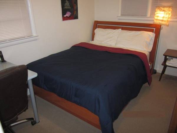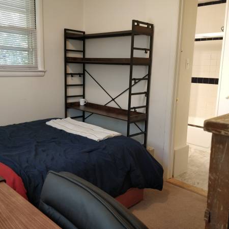This is a private, furnished room with a private, ensuite bathroom (the more expensive option) or a non-private, shared bathroom (the cheapest configuration). Furnished as is pictured. Pictures show the more expensive (ensuite bathroom) option. A video has been made of this room and the space. Just ask for the hyperlink. Because we have a spare guest room we can probably accommodate your proposed move-in date via pro-rating the first month.