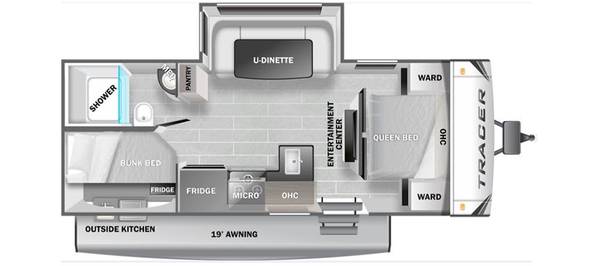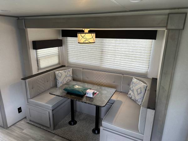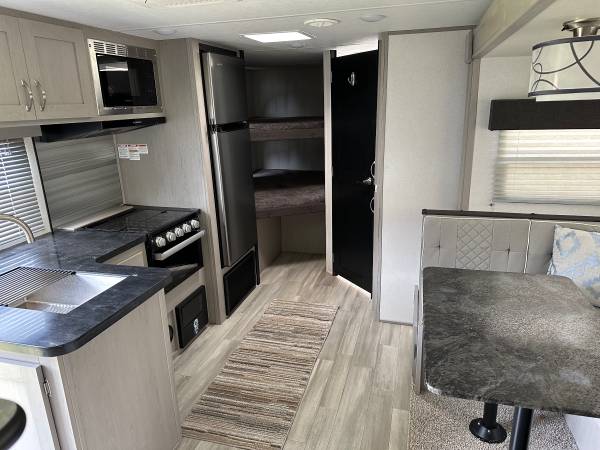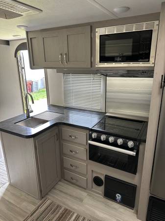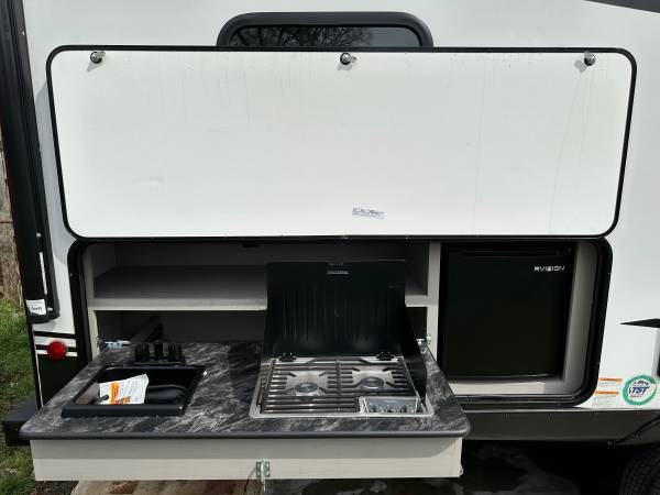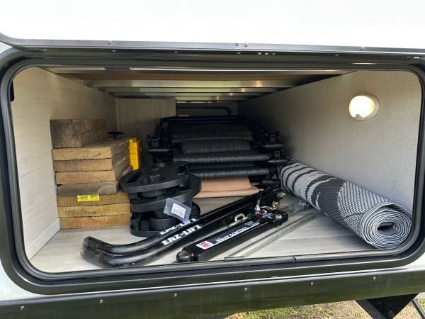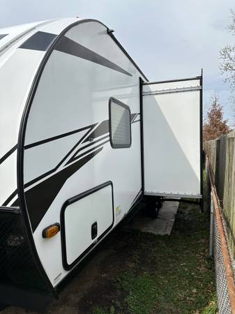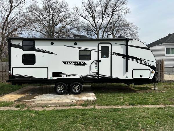 2022 Primetime Tracer by Forest River 24 DBS ultra light camper $22,000 OBO. Purchased new in February 2023 and only used a few times for weekend camping. Condition is pristine and new. See specs photo for details. I will also include many extras such as hoses, electric cords and three zero gravity camping chairs in like new condition. The TV still has the factory wrap on it never used and the small fridge in the outdoor kitchen still have the factory wrap as well. Furion indoor/outdoor sound system, LED lighting throughout. The shower was never used. The mattress is new and upgraded. Also included is a tire monitoring system never used still in the packaging. The battery is new and upgraded to a Li Time100AH Life Po4 lithium battery with BMS. Solar prep. All hitch equipment including sway control included, also Good Year Endurance tires these are the best RV tires you can get. Motivated seller contact me today. Thanks.
