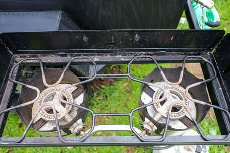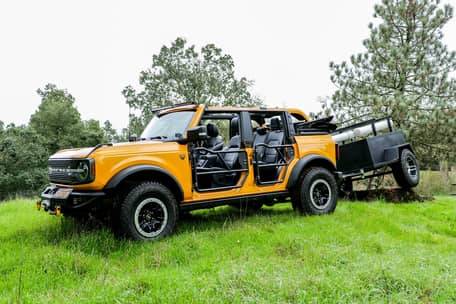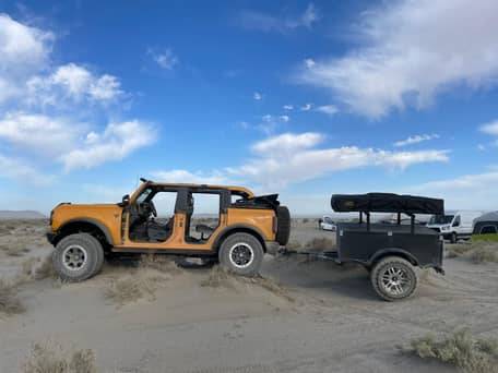 Frame locally welded by a professional union welder. Roof-Top Tent Mount (tent not included) Water Storage w/ Hose (about 15 gallons) Folding Cook Top 30k BTU Camp Chef Stove with Propane Tank...