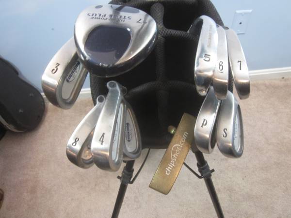 3,4,5,6,7,8,9,PW,SW wide sole, cavity backed Turbo Power Steel Plus XL-14 (Callaway clone) irons. (5 iron is a similar Whitworth 88V)