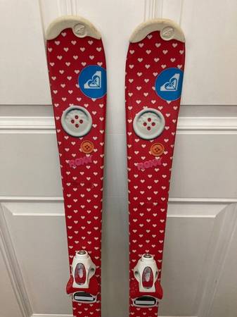 Roxy Skis 120 cm Bindings: Roxy ( will work with boots 22.0 -23.5 only) Asking $90 Cash only I am selling kids ski boots separately