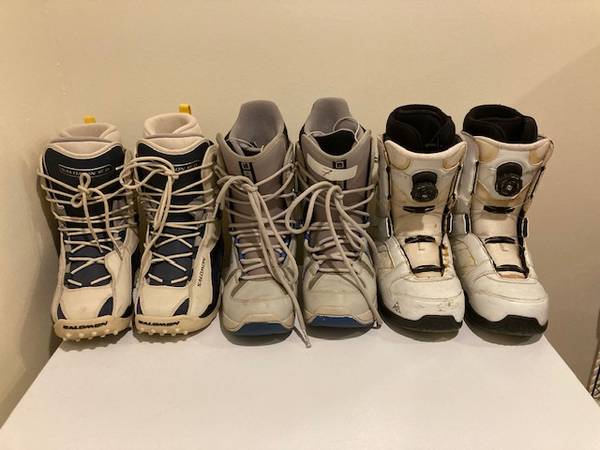 Snowboard Boots Size 6 / 7 / 8 1. Salomon Vigil Boots size 6.5 Women, but runs smaller - $40 2. BURTON Tribute Boots Size 7 Women / 6 Men, but runs smaller (6W/7M)- $40 3. K2 Raider Boa boots size 8...
