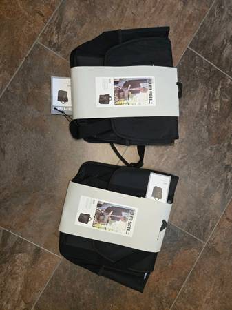 These are roomy panniers with carrying handles as well as straps for attaching to rack on bike. They are new, unused, in perfect condition and original packaging. List price was $69.99 apiece....