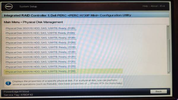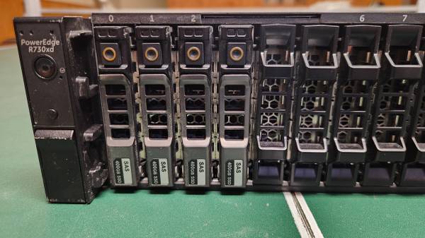 Dell PowerEdge R730XD server with 24 bays and following specs: CPU 1x Intel Xeon E5-2670 v3 2.30 Ghz RAM 128 GB DDR4 ECC 10x 1.2 TB SAS HDDs 4x400GB SSD 2x 1100W hot swappable PS