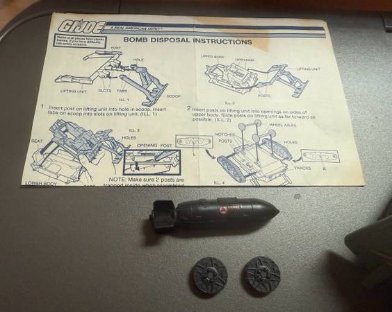 VINTAGE 1985 GI Joe Bomb Disposal Vehicle complete with bomb, 2 mines and original instructions. Made by Hasbro
