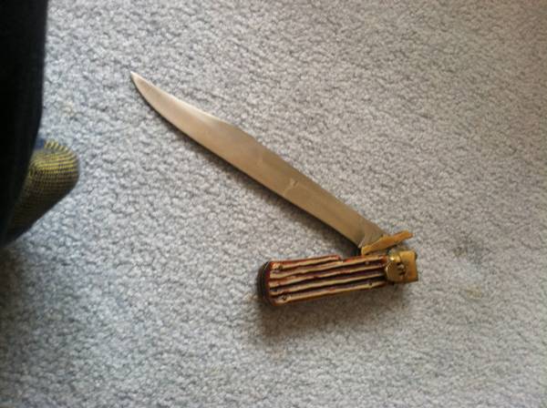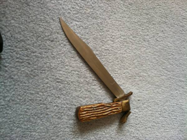 2 Old folding Bowie , about 7 1/2 inches blade when open , about 4 inches when closed Functions good and locks up good. With Sheath $45, without sheath 30.