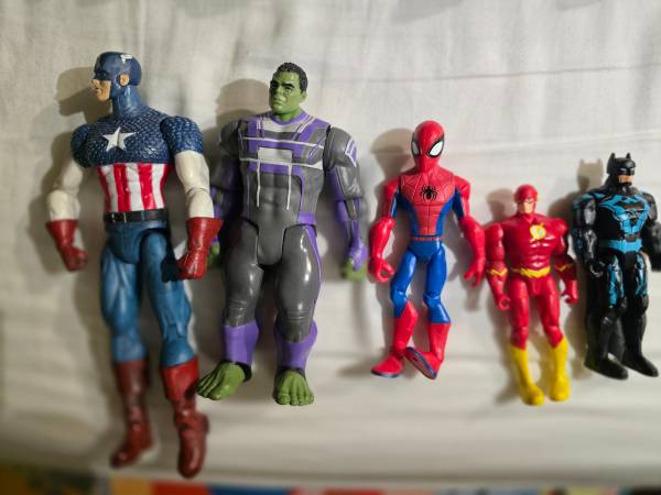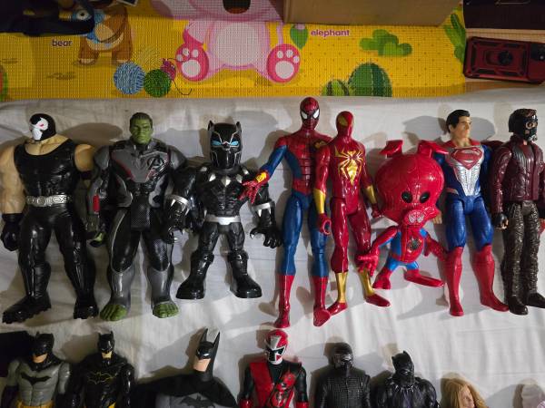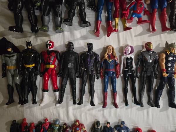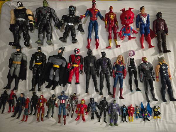 A collection of superhero figures (over 40s) and the masks ( see the attached pictures ) The perfect collection of superhero figures and masks for your kids!!! You can have all of this for $150....