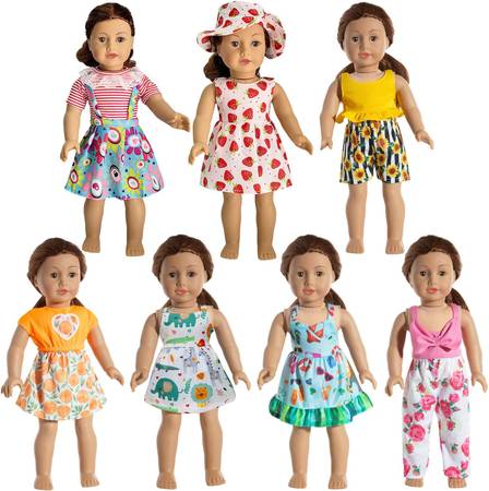 HOAKWA American 18 Inch Doll Clothes - 18 Inch Doll Clothes Accessories Fit American Dolls, 7 Set American Doll Outfits Dress, 18" American Doll Clothes and Accessories with Hat (Not Include The Doll)