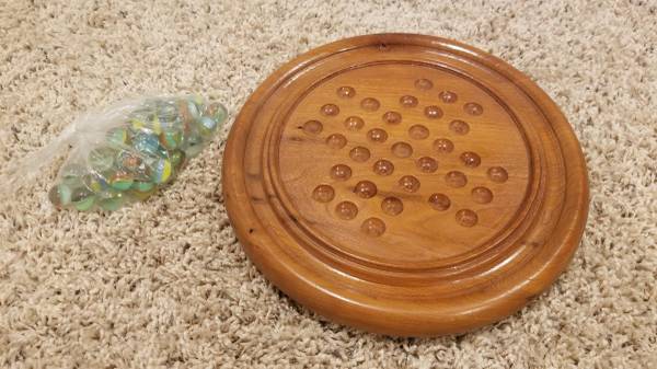 Solid Wood Solitaire Game with full set of 33 multicolor marbles