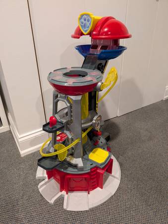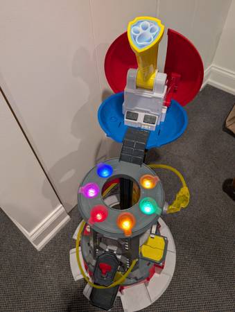 Paw Patrol Mighty Lookout Tower Playset Structure Tower 29" tall Lights & Sound work Elevator works Zipline is attached at the top but all other brackets (aside from the top one) are missing....