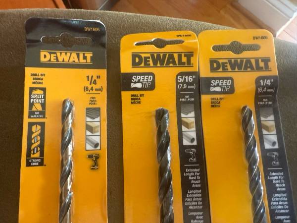 Includes Qty 1 – DeWalt DW 1606 1/4 in. x 12 in. Black and Gold Twist Drill Bit Qty 1 – DeWalt DW 1606 1/4 in. x 12 in. Black Oxide Twist Drill Bit Qty 1 – DeWalt DW 1608 5/16 in. x 12 in. Black...