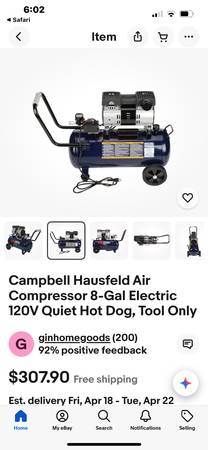 NEW Unopenned Campbell Hausfeld Ultra Quiet 8-Gallon Portable Electric 125 PSI Hot dog Air Compressor 120V