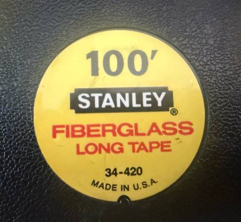 Vintage Stanley 100 Ft. Long Fiberglass Tape Measure #34-420 is a great addition to any toolbox. The yellow measuring tape is marked with standard (SAE) measurements and is contained in a hard plastic reel that is 7.75 inches in diameter. This measuring tape is perfect for both personal and professional use.