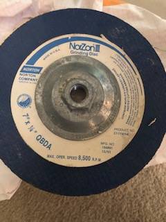7" x 1/4" grinding disc Max operating speed 8,500 rpm