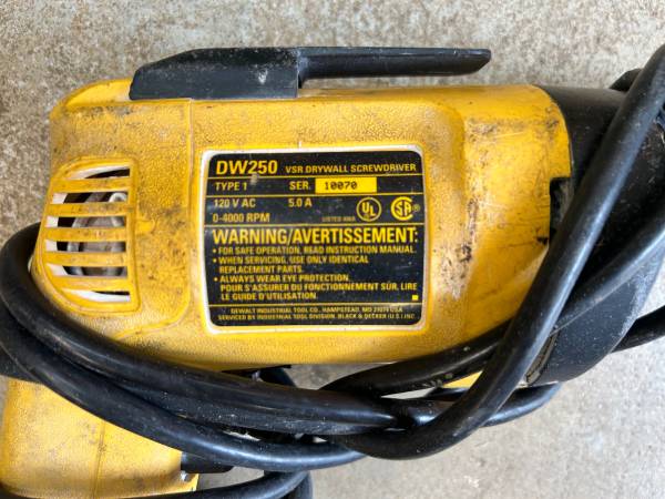 DEWALT DW250 VSR Drywall Screwgun, Used DeWalt power drill in working condition. Cash $150