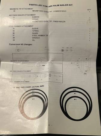 PALM NAILER KIT, MODEL: MFPNAK Includes instruction, various and case Cash