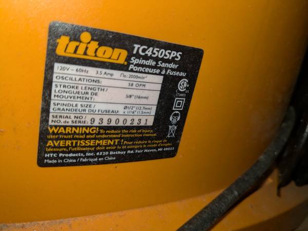 Triton 3" Spindle Sander TC450SPS I am selling the following of my father's woodwoking tools: Delta Band Saw28-203 (14" vertical, 1/2 HP) (manual included) - $500...