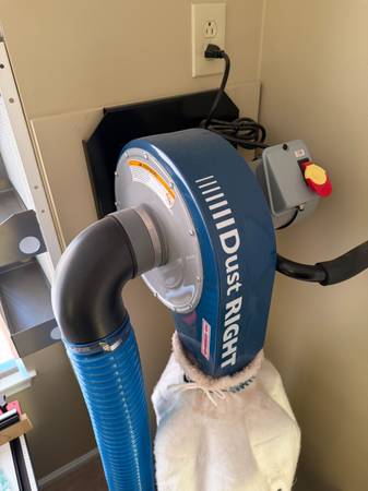MOVING SALE - MUST GO! Purchased new for $400 August 2024 at Rockler in Fairfax, VA. EXCELLENT condition - gently used less than 10 hours total in indoor, climate controlled shop. Includes upgraded dust collection bag, wall mounting bracket and 21' 4" flexible hose with quick change connector. Local buyers only. Seller accepts cash, Venmo, or electronic equivalent.