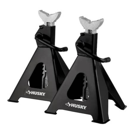 2 Husky 3 ton jack stands, engineered for superior durability and safety during automotive maintenance tasks. Built with a heavy-duty steel base featuring anti-sink feet, these jack stands deliver exceptional stability and reliability. With an extension range from 12 inches to 17.5 inches, these jack stands offer versatile height adjustments to accommodate SUVs, light trucks, and standard automobiles. Equipped with a locking pin for enhanced safety, they provide added security while working under your vehicle.