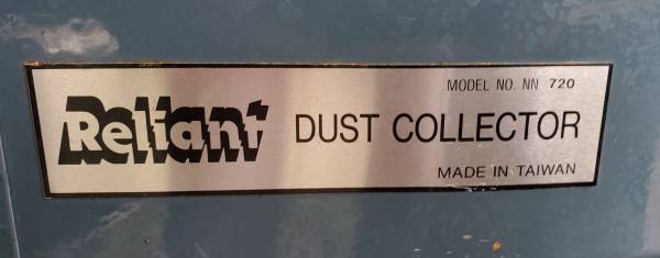 Dust collector for small workshops Model NN720 1 HP 115/230 V 10/15 AMP 3450 RPM Made in Taiwan 1992