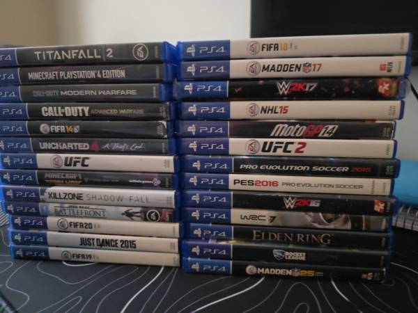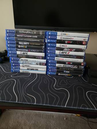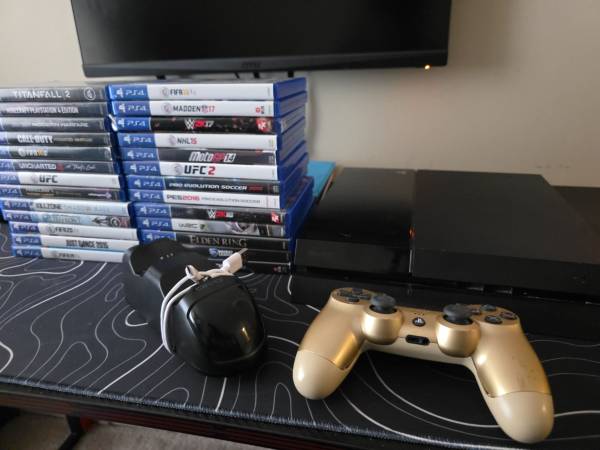 Selling a semi new ps4 (1-2 years of use), controller, charging cord, charging station for controller, power cord. Also selling the games (26 of them) if you would like to make an offer for just the...