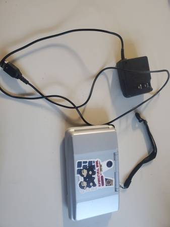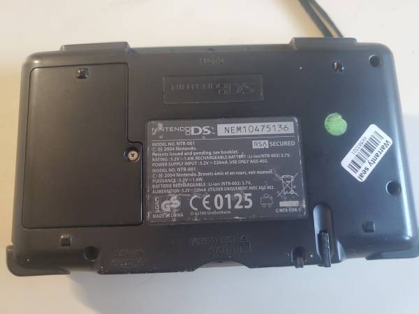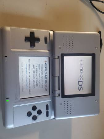 An original model Nintendo DS, complete with a charger and a few games. It has a sticker on the top that says "SUPERNATURAL BROS." that can easily be removed with Goo-Gone. A few scratches on the outside due to age, but otherwise works great and has amazing battery life.