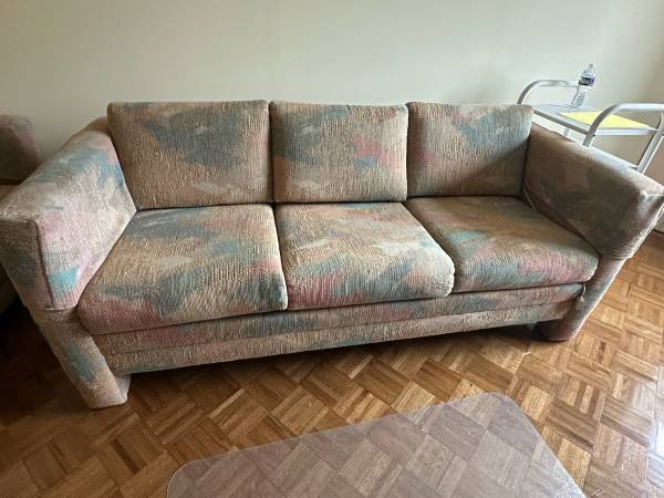 Vintage well made sofa bed and matching loveseat. In good condition and very comfortable