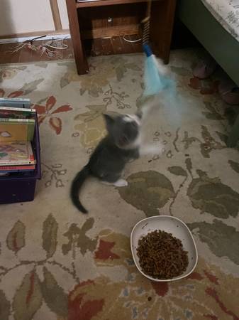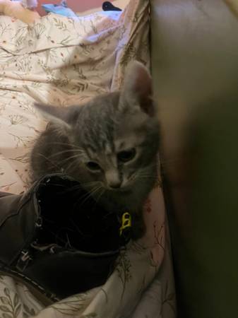 We have a kitty ready to go to a good home. She is most likely a female, but not 100% sure. She was born on August 30th. She is very playful, eat soft and hard food and use the litter box. She has not been to the vet nor received any shots.