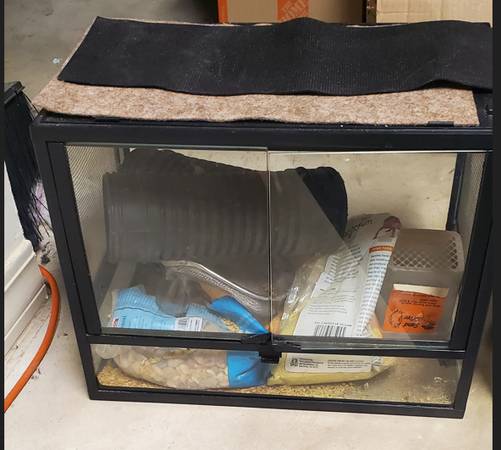 Two reptile habitats for FREE. The green top one was used for Scorpions and baby Tortoise, and the glass cage was used for baby Bearded Dragons and Geckos. There are in good condition, just need...