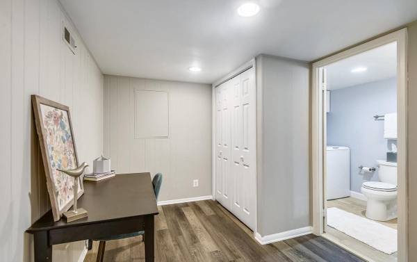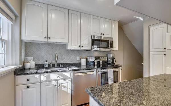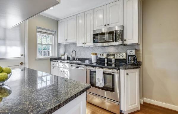 The light-filled main living level features gleaming hardwood floors & neutral paint throughout. The beautifully updated Cameo kitchen is a chef’s dream! The expanded, open kitchen is accented with white custom cabinets, granite countertops, a newer dishwasher, an island, dimmable overhead lighting, & under-cabinet lighting. Additional cabinetry offers extra storage space, as well as a built-in desk! The serene & private back patio off of the kitchen is perfect for relaxing or entertaining and completes this level. The upper living level features a spacious bedroom with a separate sitting area & two large closets. An updated full bathroom with a custom shower, custom vanity with quartz countertop, & limestone floor tile completes this level. The remodeled lower living level features a spacious recreation room with built-in shelving, brand new luxury vinyl plank wood flooring, & recessed lighting. The bonus space with a closet, is commonly used for guests or as a home office, and an updated ensuite full bathroom with a brand new washer & dryer, complete this level. Other home features include a large floored attic for extra storage, two parking spots, & a private front entrance with a large front yard. Brand new water heater!