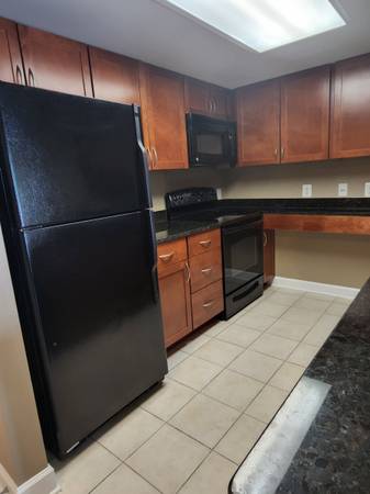 🍽️ Modern Kitchen with black Appliances and granite counter spaces