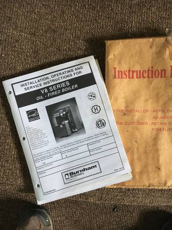 BURNHAM OIL FIRED BOILER, USED BUT STILL IN SERVICE. MODEL PV83WC GREAT WORKING COND. MFG 2006 109,000 BTU. USED IN WATER BASEBOARD HEAT. HAVE OWNERS MANUEL ASKING $450 OBO