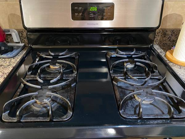 Gas stove with 4 burners and oven (bake, broil, timers, etc)