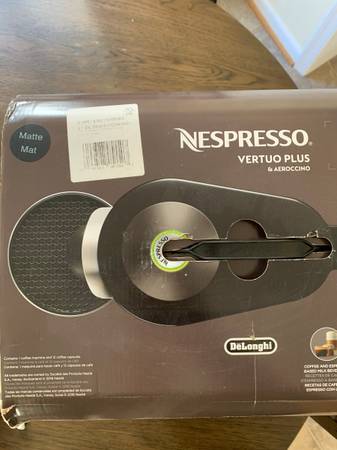 Brand new De'Longhi Nespresso Vertuo Plus Coffee and Espresso Maker complete with Aeroccino 3 milk frother and sample pack. Limited edition matte black.