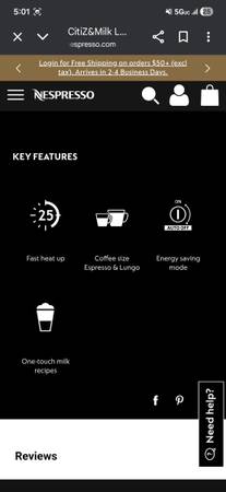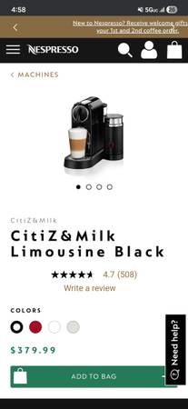 Mint condition Nespresso CitiZ&Milk Coffee Make in Limousine Black color. Comes with attached Milk Frother. $125