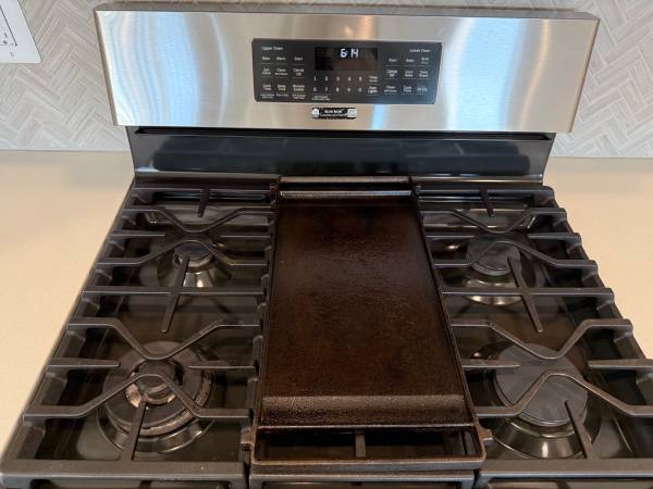 Stainless steel GE gas range with built-in griddle and multiple burners. This unit is only about a year and a half old and an excellent condition. There is a very small dent at the bottom of the unit ( refer to pics). The unit retails for around $2250 and we’re asking for less than a third of the price. Final price.Cash or. Zelle or Venmo. Specs can be found below Model #: PGB965YPFS Dimensions: 47.25 H x 30 W x 29.25 D https://www.geappliances.com/appliance/GE-Profile-30-Free-Standing-Gas-Double-Oven-Convection-Fingerprint-Resistant-Range-with-No-Preheat-Air-Fry-PGB965YPFS