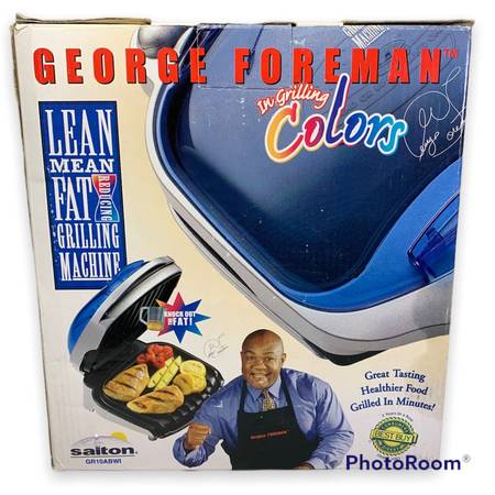 New George Foreman Grill - Blue - Family Size - In Grilling Colors - In Original Packing for $59 or best offer. Please text Manny at , if interested.