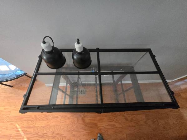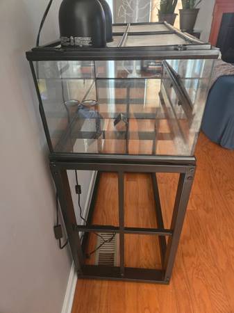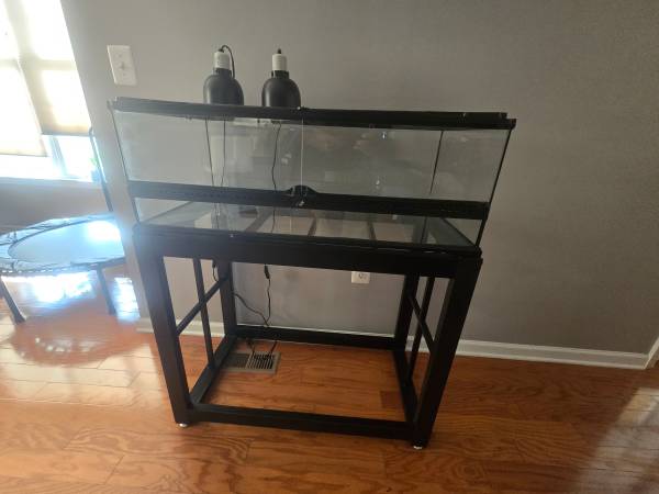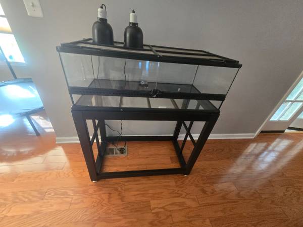 Reptile tank w/metal stand 36x18x12.5 approximately. Comes with lamps no bulbs. 200.00 or best offer.