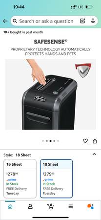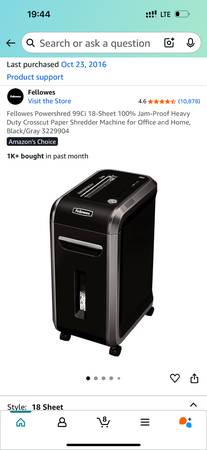 Fellowes Powershred 99Ci 18-Sheet 100% Jam-Proof Heavy Duty Crosscut Paper Shredder Machine for Office and Home, Black/Gray 3229904 Original purchase: https://a.co/d/gTZUvX3 Moving, must sell.