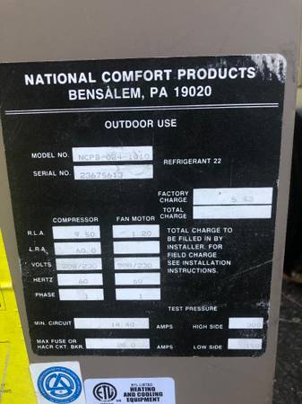 For Sale: National Comfort Products 2-ton Condenser Full of R-22 $100 in working Conditions If interested text me at . Key: Heat Pump, Air Handler, Heater Strips, Heat Pack, KW, Evaporator Coil,...