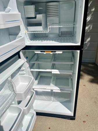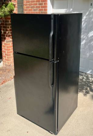Black GE refrigerator. Works well, we just upgraded to a different model. Must be able to pick up and transport from Herndon, VA. Cash or Venmo only.