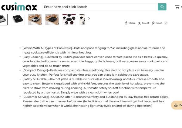 CUSIMAX 1500W Electric Hot Plate - appliances - by owner - sale -...