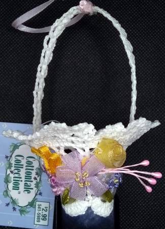 Five Crocheted Basket Ornaments The ornament has been stiffened with some kind of glue or starch. The Basket is about 4 inches tall and about 2 3/4 inches around. A 360 degree video view of the...