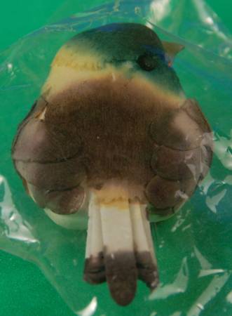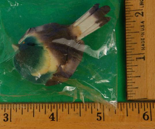 I also have six of the same bird, with yellow and green feathers, listed. To find that listing click the "more ads by this user" link and search for "Darice".