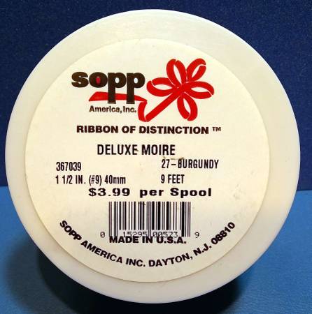 NOS Sopp America Ribbon of Distinction Deluxe Moire Burgundy 1.5x9ft...